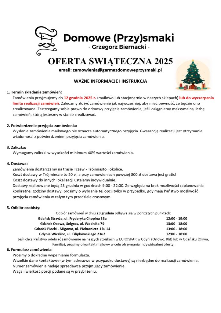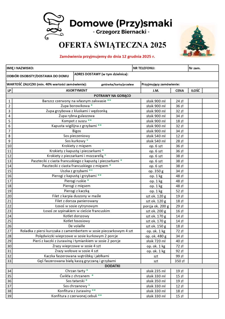 Boże Narodzenie 2025 Pobierz ofertę PDFZłóż zamówienie Imię i Nazwisko Adres e-mail Telefon Wiadomość Zgody (wymagane) Zgody (wymagane) Potwierdzam, że zapoznałem się z treścią polityki prywatności strony – więcej informacji uzyskają Państwo tutaj Zgody (opcjonalne) Zgody (opcjonalne) Wyrażam zgodę na otrzymywanie na podany adres poczty elektronicznej informacji handlowych dotyczących usług i produktów własnych – więcej informacji uzyskają Państwo tutaj Wyrażam zgodę na otrzymywanie na podany adres poczty elektronicznej informacji handlowych, dotyczących usług i produktów oferowanych przez podmioty współpracujące z administratorem danych – więcej informacji uzyskają Państw tutaj wyślij